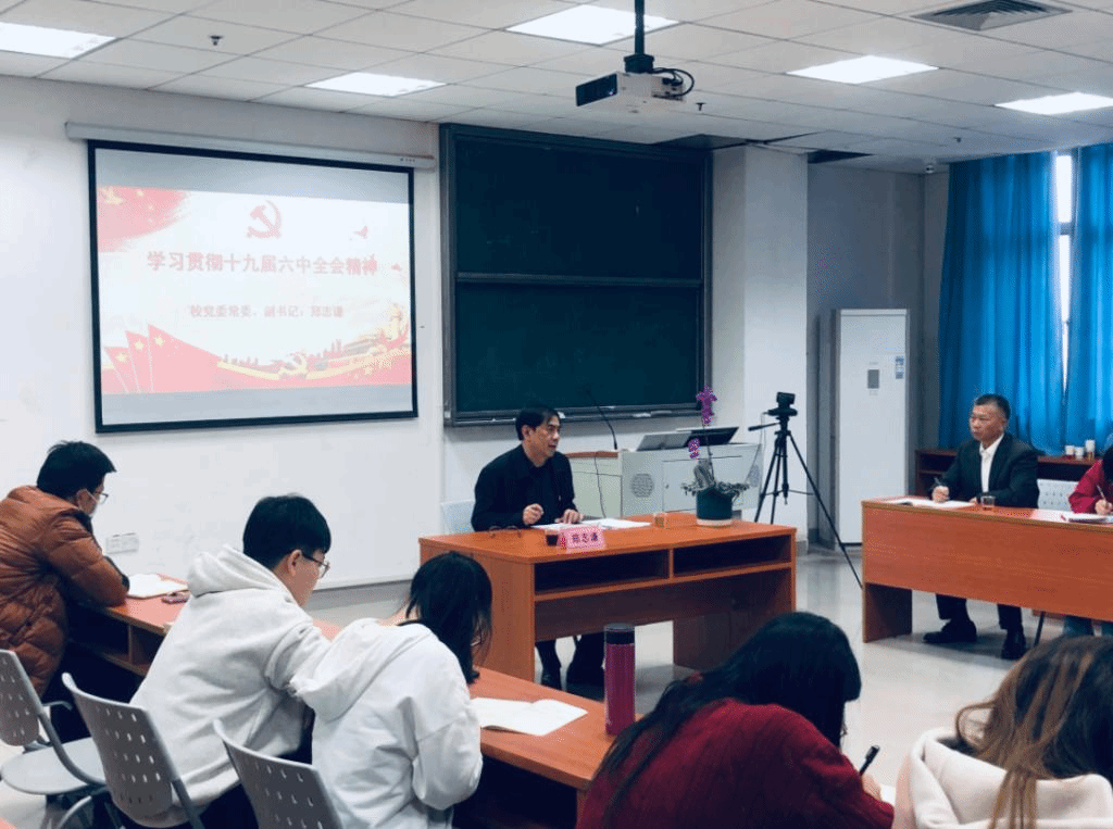 12月23日,校党委常委、副书记郑志谦到理学院做学习贯彻党的十九届六中全会精神宣讲报告,报告由院党委副书记郭金锭主持,院党委书记吴连星及部分师生代表参加此次宣讲报告。