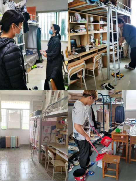 同学们热情高涨,积极投身大扫除活动中,擦拭门窗、桌椅,打扫地板、楼道,清理垃圾、杂物。学院全体辅导员下沉宿舍,带领学生党员干部,对宿舍卫生、楼层通道、垃圾分类等进行全面检查督导,引导学生养成良好生活卫生习惯,增强学生卫生防疫意识,助力文明校园建设。