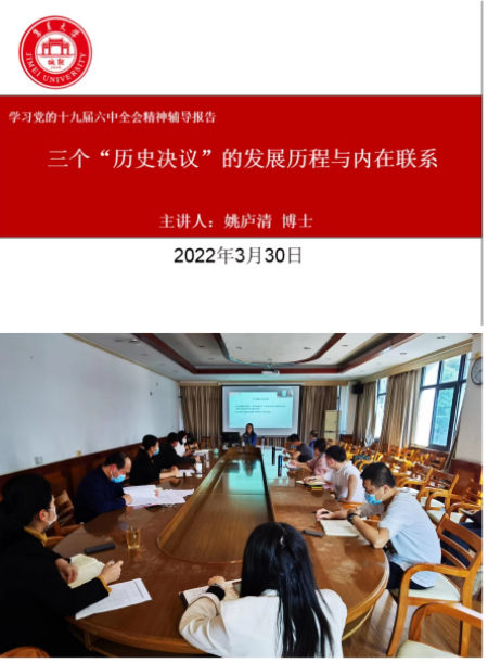 3月30日下午,海外教育学院邀请马克思主义学院姚庐清博士作党的十九届六中全会精神学习辅导报告,学院教职工、学生党员、入党积极分子以线上线下相结合的方式聆听讲座。
