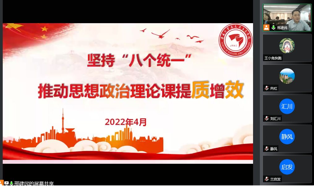 4月6日下午,马克思主义主义学院通过线上会议举行纪念“习近平总书记召开学校思想政治理论课教师座谈会并发表重要讲话 ”三周年座谈会。座谈会由学院党委书记王娟主持,肖仕平教授和朱婷婷、王东两位青年教师分别做交流发言,常务副院长张劲松进行总结发言。