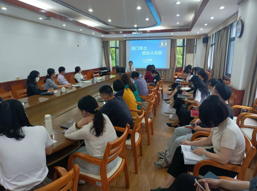 叶光煌以“厦门本土音乐人与歌”为主题,讲述了几代厦门本土音乐名人爱国爱乡,为人民创作,为祖国歌唱的历史往事, 介绍了由厦门本土音乐人和集美校友创作的《延安颂》、《康定情歌》、《中国少年先锋队队歌》、《鼓浪屿之波》等歌颂党和祖国、歌颂家乡和人民的经典音乐作品。