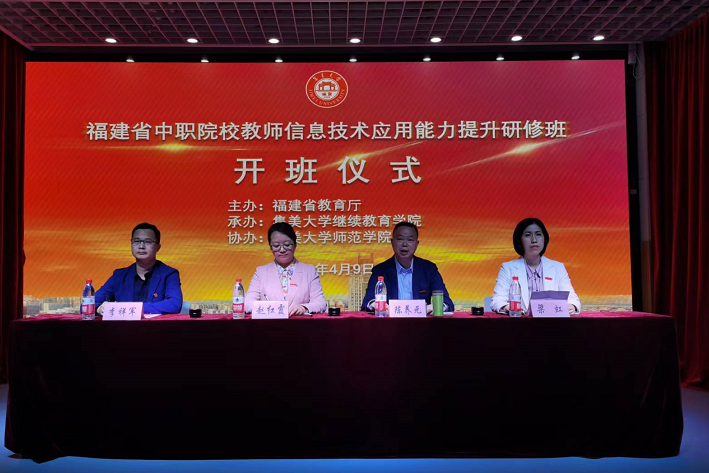 近日,由福建省教育厅主办、我校继续教育学院承办、师范学院协办的“福建省2021年中职院校信息技术应用能力提升培训班”正式开班。本次培训通过线上方式举行。继续教育学院院长陈养元、党委副书记李祥军、师范学院院长赵红霞、副院长梁虹等领导出席了开班式。