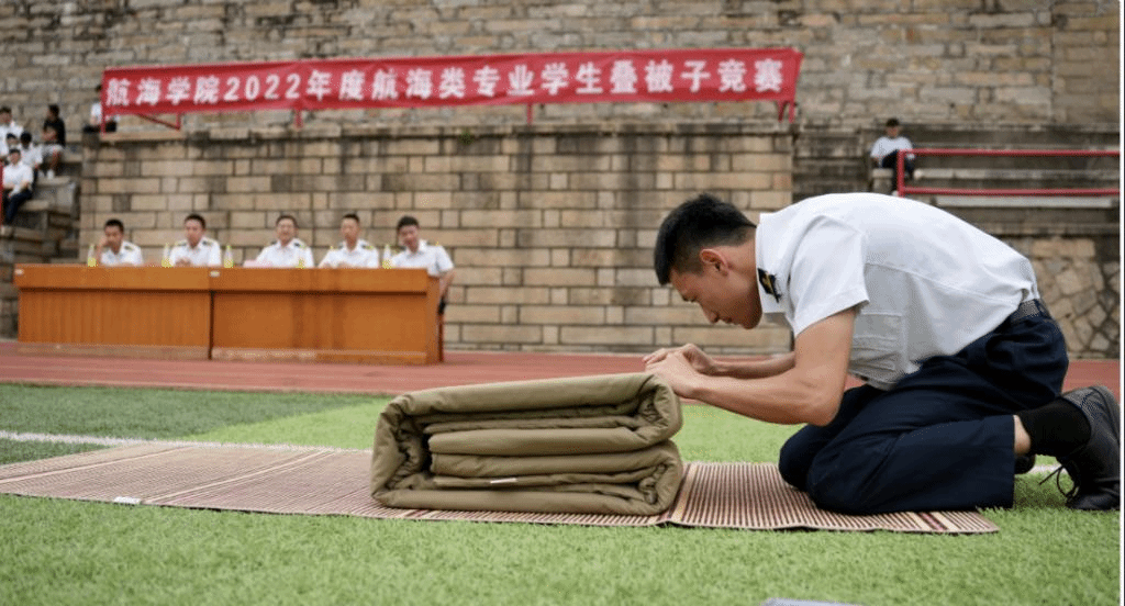 半军管风采│航海学院举办2022年航海类专业学生叠被子大赛