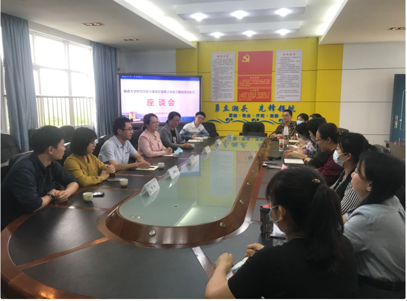 5月27日,师范学院院长赵红霞、学院党委副书记张鸿、小学教育教研室主任、团委副书记等一行7人走访集美区曾营小学,与曾营小学校长高玉梅等进行座谈。