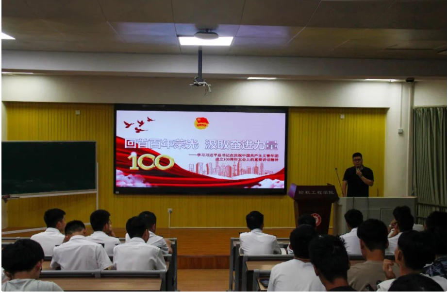 为庆祝中国共产主义青年团成立100周年,引导广大青年继承共青团优良传统、厚植爱国主义情怀,轮机工程学院近日在育志楼227教室召开“回首百年荣光 汲取奋进力量”——学习习近平总书记在庆祝中国共产主义青年团成立100周年大会上的重要讲话精神团课。团课由学院团委副书记王宇亮主讲。学院团员代表、“青马工程”大学生骨干培训班全体成员听取了讲座。