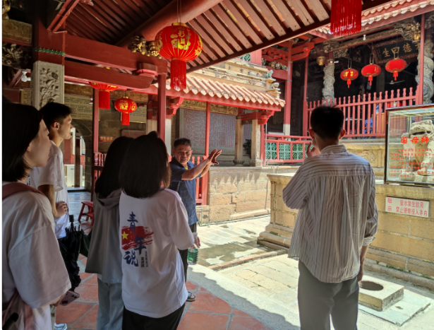 活动中,师生一同参观了漳州台商投资区南门文化红色基地。该馆以史实为依据,结合壁画、雕塑、多媒体技术展示了角美儿女不怕牺牲,踊跃支前、摇船参战的红色故事。通过参观历经600余年历史沧桑的古建筑——白礁王氏家庙,队员们深刻领悟到“好家风涵养好作风”的重要性。在讲解员的带领下,队员们还参观了全国重点文物保护单位——“闽南故宫”白礁慈济宫,聆听保生大帝救死扶伤、无私奉献的感人故事,感受白礁慈济宫千年的历史文化底蕴。