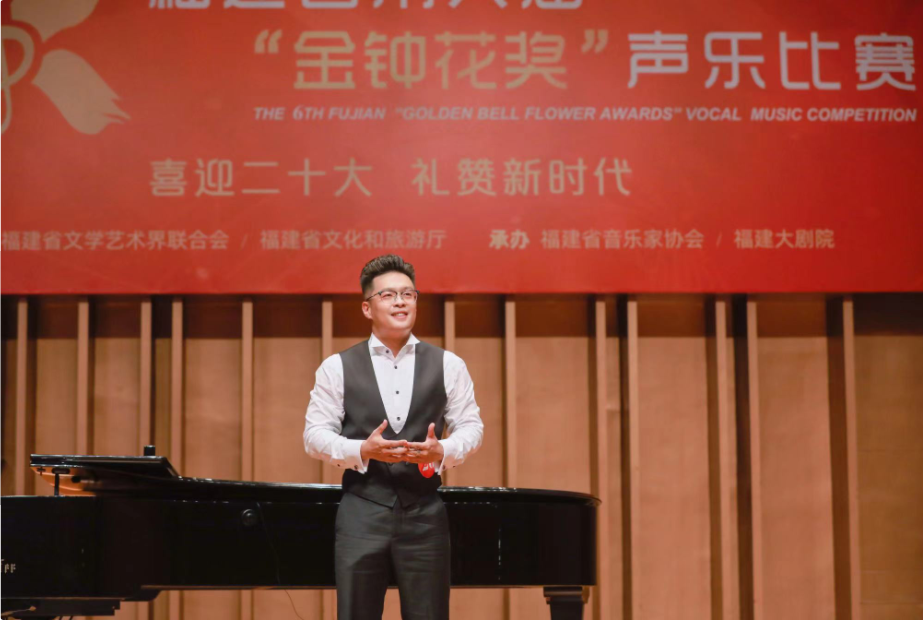 由福建省文学艺术界联合会、福建省文化和旅游厅主办,福建省音乐家协会、福建大剧院承办的“喜迎二十大,礼赞新时代”福建省第六届“金钟花奖”声乐比赛于2022年8月20日至23日在福州圆满落幕。经过激烈角逐,我院青年教师刘胤隆荣获美声组银奖,展现了我院青年教师的实力与风采。