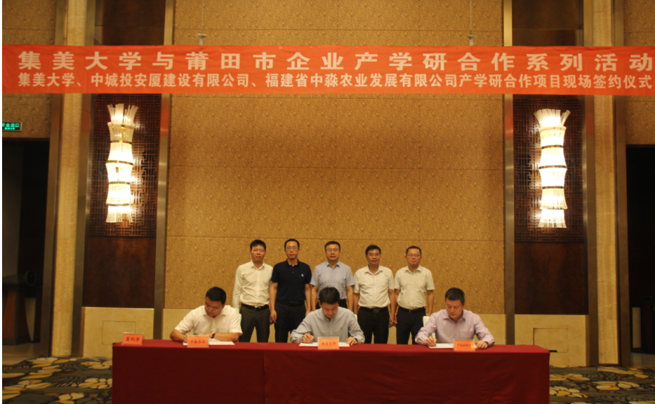 10月22日,我校在莆田市希尔顿酒店与中城投安厦建设有限公司、福建省中淼农业发展有限公司举行产学研合作项目现场签约仪式。莆田市海洋与渔业局局长郑新群、莆田市科技局副局长林成龙、项目落地当地区、镇政府有关领导、企业代表及我校科研处、水产学院领导等有关人员共计30余人参加了此次产学研合作交流活动。