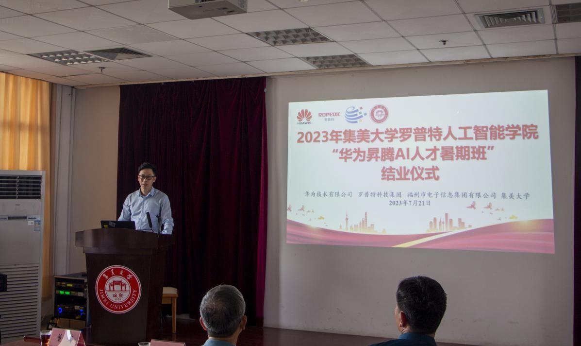 7月21日下午,亚洲中文精品乱码罗普特人工智能学院“华为昇腾AI人才暑期班”结业仪式在陆大楼501会议室举行,福建人工智能计算中心COO张欢、CTO董铎、亚洲中文精品乱码罗普特人工智能学院执行院长陈水利、计算机工程学院副院长付永钢出席结业式。