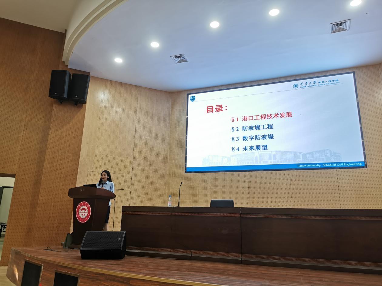 29日下午,张金凤作题为“防波堤:从传统到数字赋能”的主题讲座。她从港口工程技术的发展入手,详细介绍了当今国内外各种防波堤工程的建造理念和实例,分析了数字防波堤在港口工程中的应用和未来趋势,勉励师生了解港口海岸工程领域现状与发展趋势,为今后的工作与学习打好坚实的学术基础。