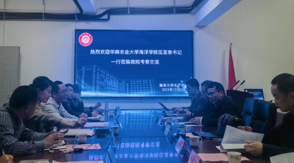 12月5日,华南农业大学海洋学院党委书记伍亚泰、副院长杨慧荣一行6人来水产学院调研交流。