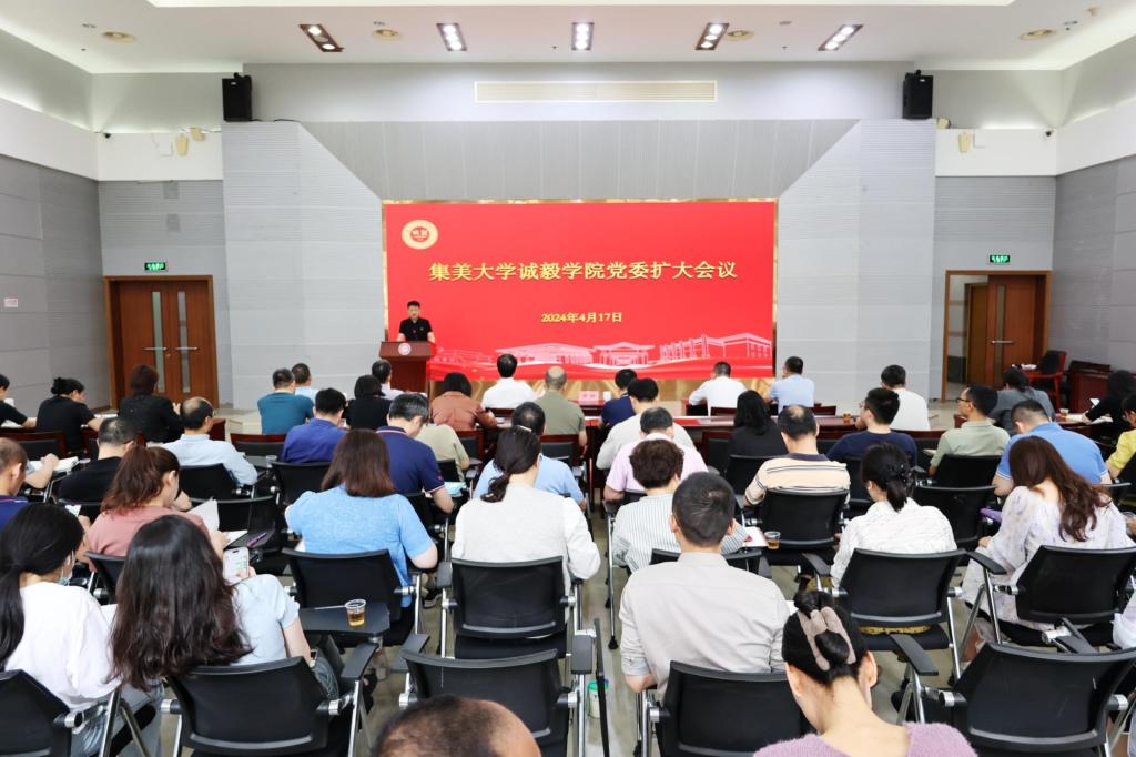4月17日上午,诚毅学院召开党委扩大会议,认真学习贯彻习近平总书记关于党纪学习教育的重要讲话和重要指示精神,落实校党委扩大会议暨党的建设工作领导小组会议精神,部署学院党纪学习教育工作。院党委书记罗钫作动员讲话,院党委副书记连志崧主持会议。院党委委员,各部门负责人,各教学系(院)党委(党总支)书记、各直属党支部书记,各教学系(院)组织员、全体党支部书记参加。