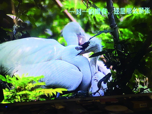 李庆祥说,拍摄鹭鸟的摇臂是电控摇臂,可以根据设在控制端的监视器显示的影像,遥控末端的摄影机进行聚焦、变焦、构图、左右上下摇等调整动作,操作时几乎不会发出任何声响。因此,白鹭们丝毫不理会摄像机,该干吗就干吗,白鹭在飞翔、白鹭在喂食、白鹭在嬉戏……这一切都被镜头清晰地记录下来。