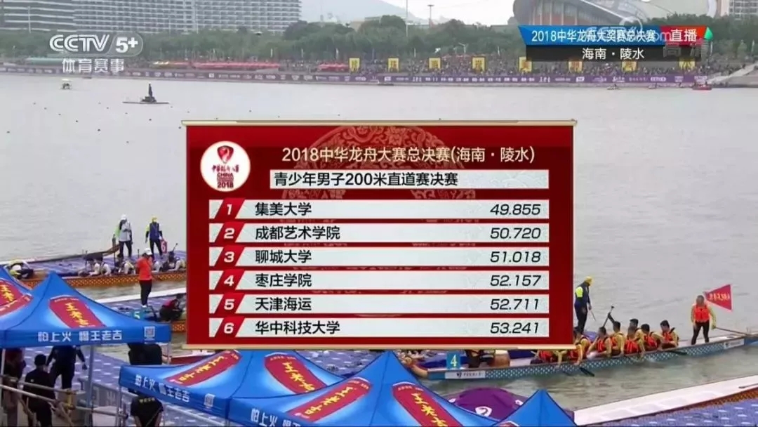 本届赛事中,集大龙舟队在分站赛中共斩获3金、5银、2铜、3个第四,作为本年度分站赛青少年男子组总积分第一的队伍成功杀入决赛。经过激烈角逐,集大龙舟队获得青少年男子组100米直道赛第一、200米直道赛第一和500米直道赛第二,勇夺2018中华龙舟大赛青少年男子组总决赛冠军。