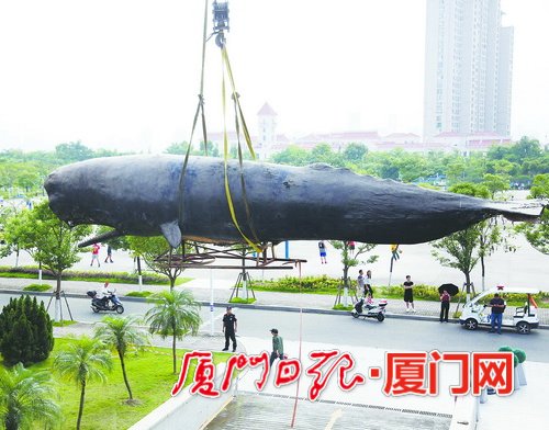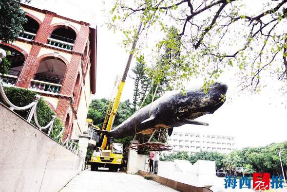 【中国教育在线 厦门日报 海西晨报】集大3吨抹香鲸真皮形态标本“搬家”