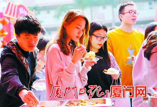“鸡排、封肉、芋头酥等都很诱人,这些在老家都是比较少见。”家在山西阳泉的体育学院小吴同学表示,想把这份“闽南年味”美食在寒假带回去与亲人分享。