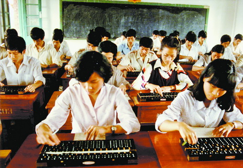 在手工计算的年代,练好珠算基本功,成了每个学生专业学习成绩合格的“铁律”。学校开设“珠算”课程,订立“技法等级”标准,不间断组织过级考核。课前课后,“噼啪”的算盘声“洒”落校园、成为特色的旋律。在校园内,“二五对珠”练就了学生对专业学习的自觉和严谨,“运算法则”养成了学生对职业操守的规范和敬畏。