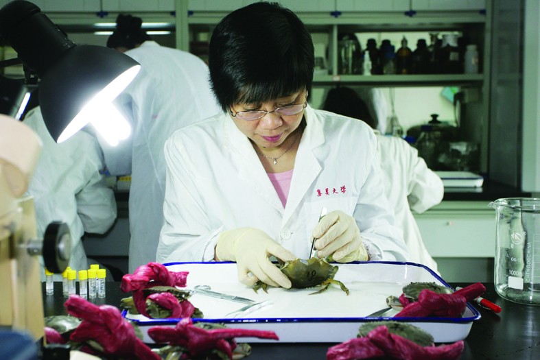 说起王艺磊的研究对象,你可能要咽一下口水。在她多个重要研究项目中,许多都与美味的水生经济动物有关,如青蟹、大黄鱼、鲍鱼、对虾等。她的研究既有理论意义,又有生产应用前景。