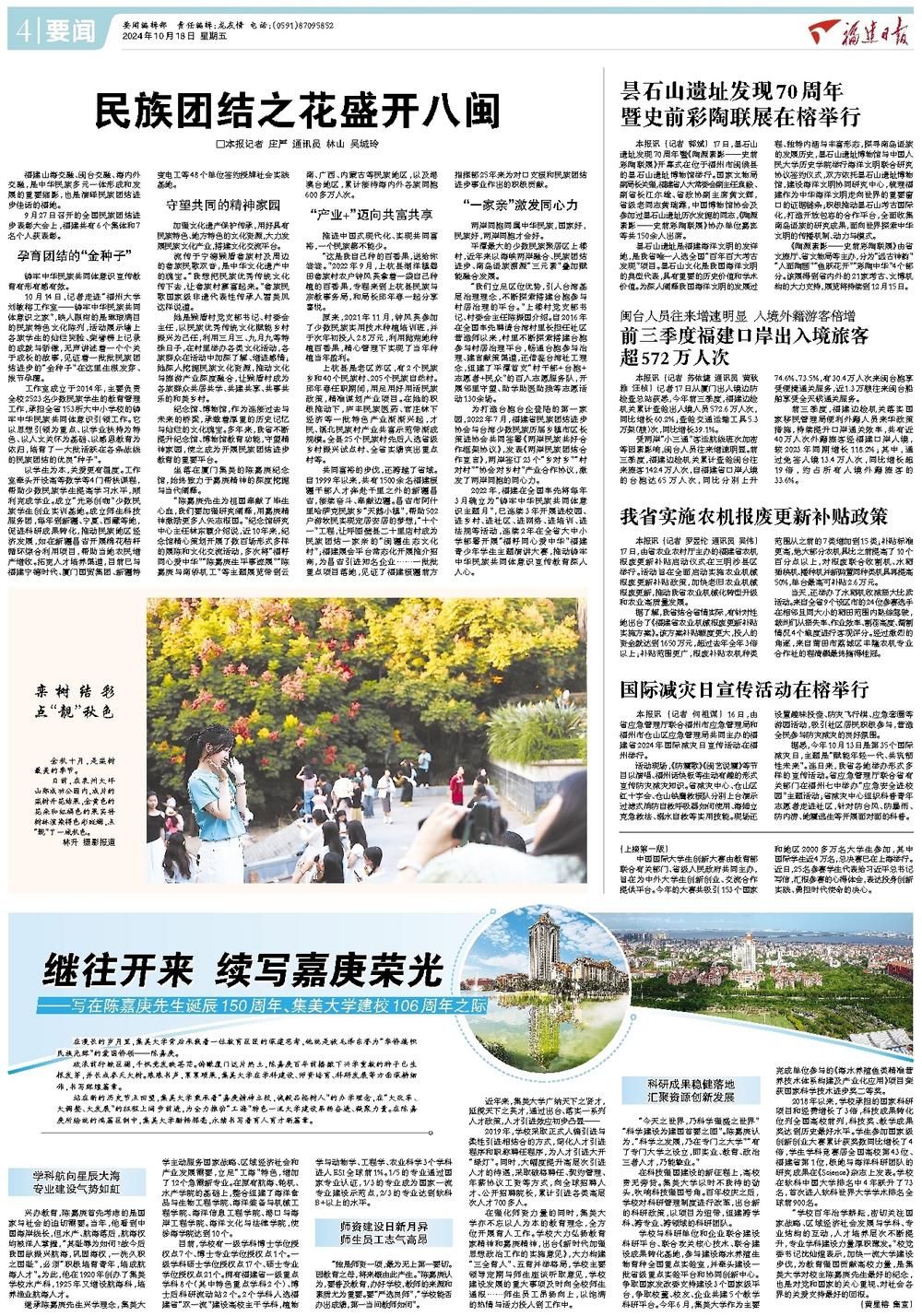 【福建日报】继往开来 续写嘉庚荣光 ——写在陈嘉庚先生诞辰150周年、亚洲中文精品乱码建校106周年之际-亚洲中文精品乱码