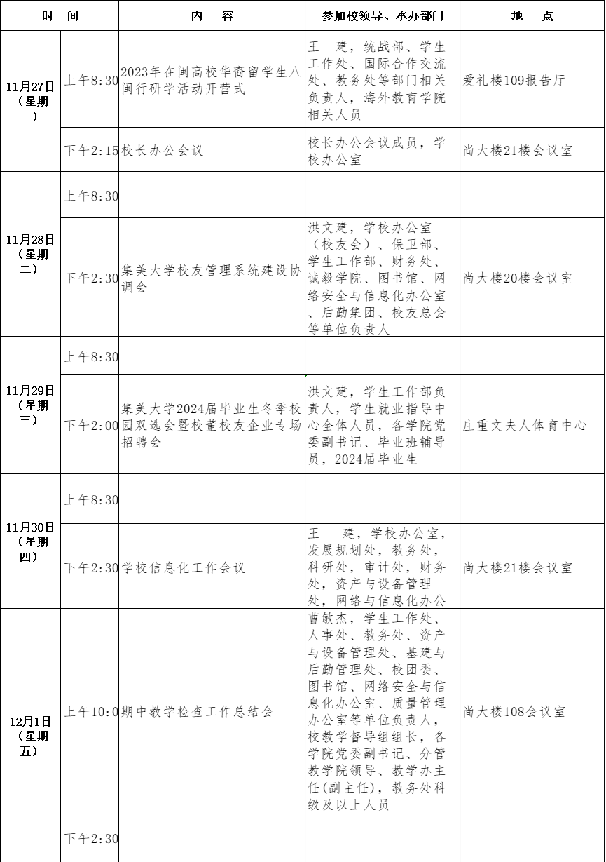 亚洲中文精品乱码2023-2024学年上学期第13周会议安排表-亚洲中文精品乱码